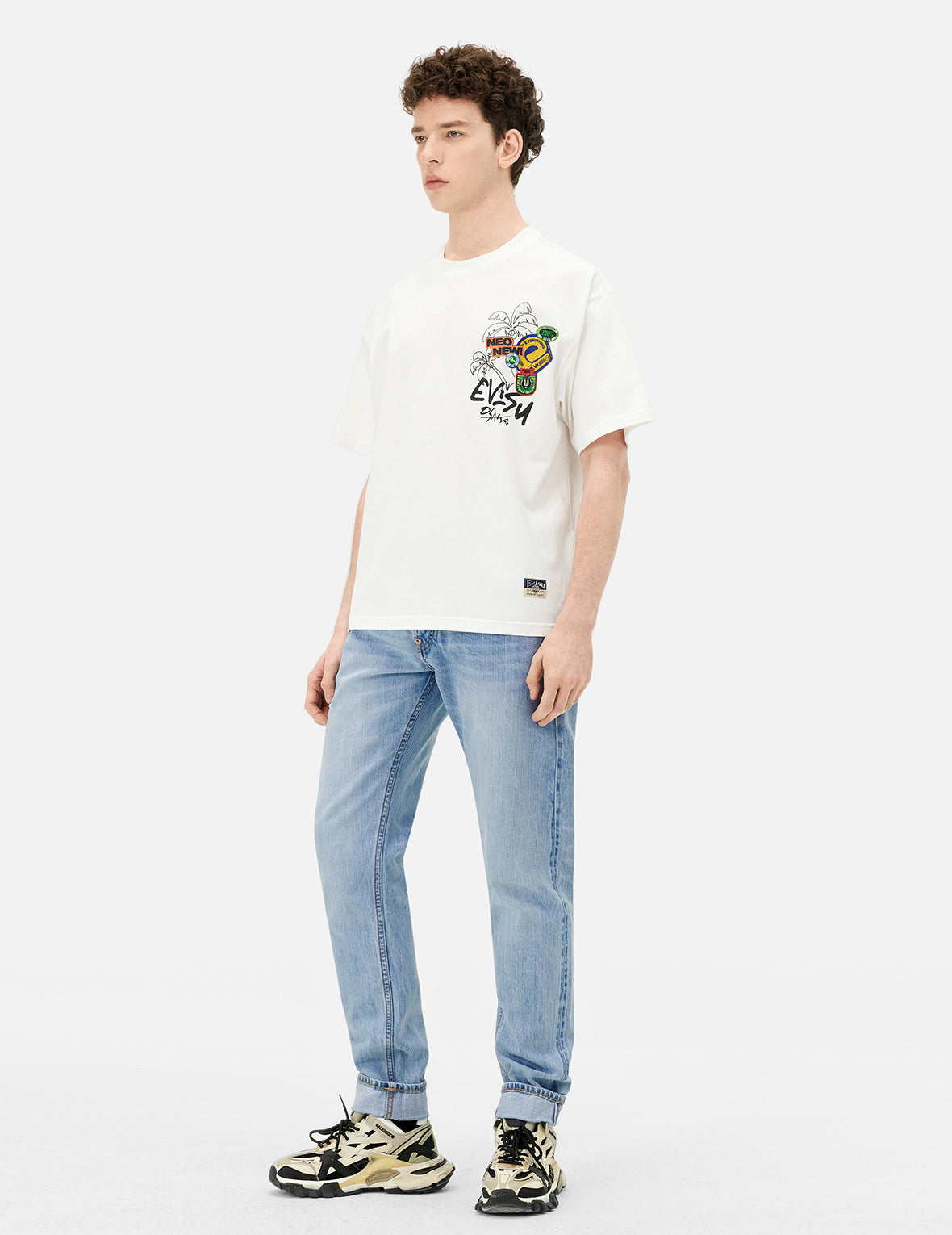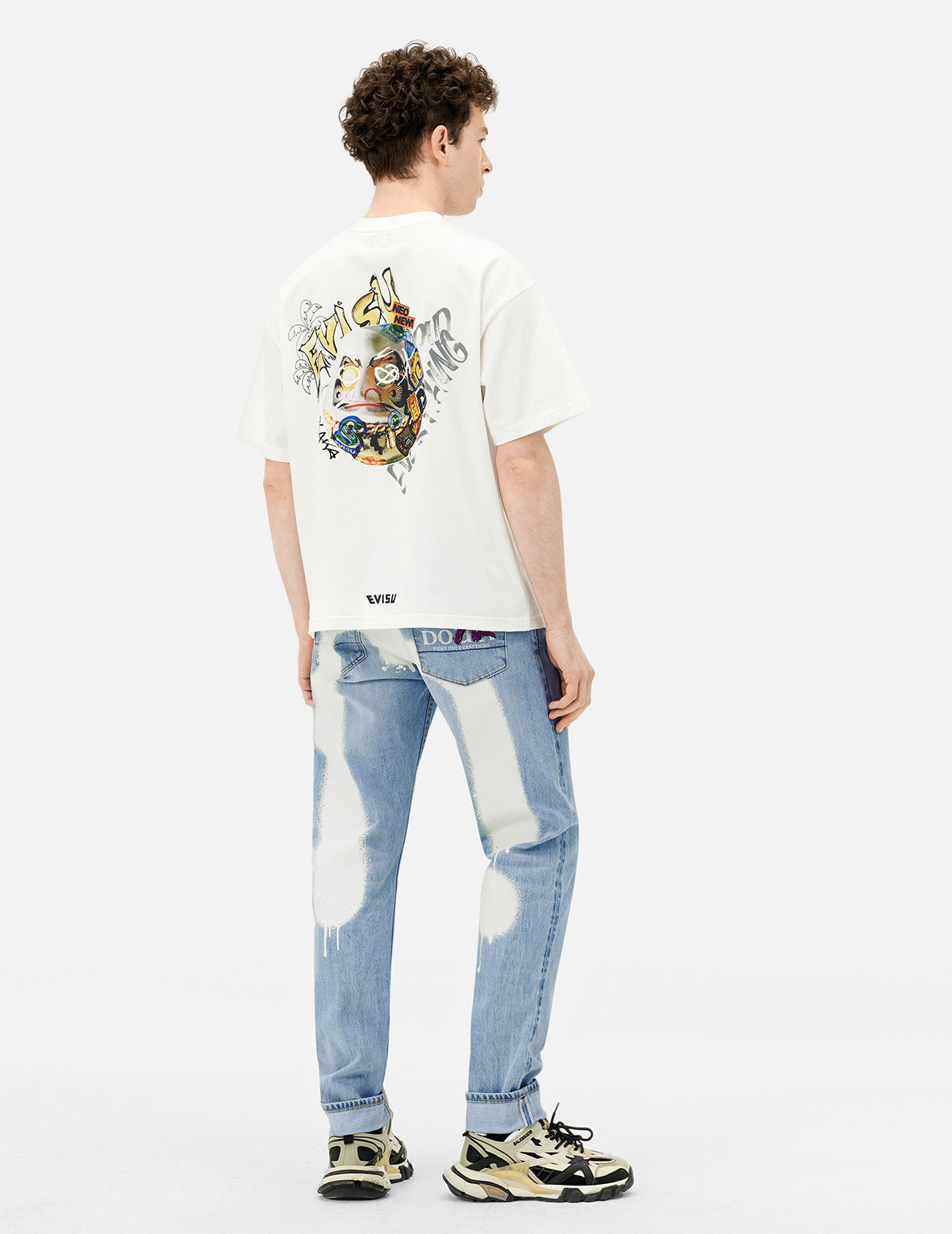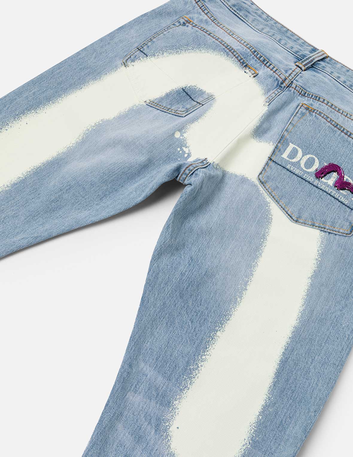 Featuring a bold graffiti-inspired Daicock print, these taper-fit jeans exude a vibrant streetwear vibe. The slogan-printed pockets inject a dose of personality, creating a distinctive and attention-grabbing style that’s ideal for trendsetters seeking to stand out.