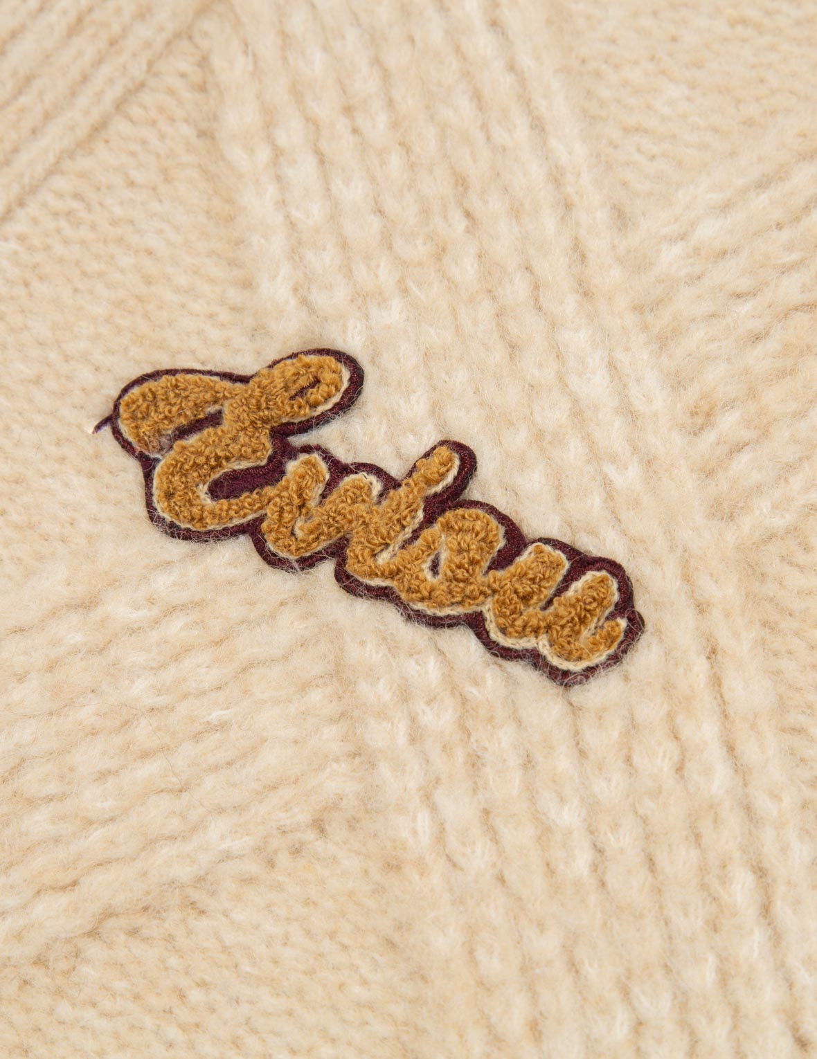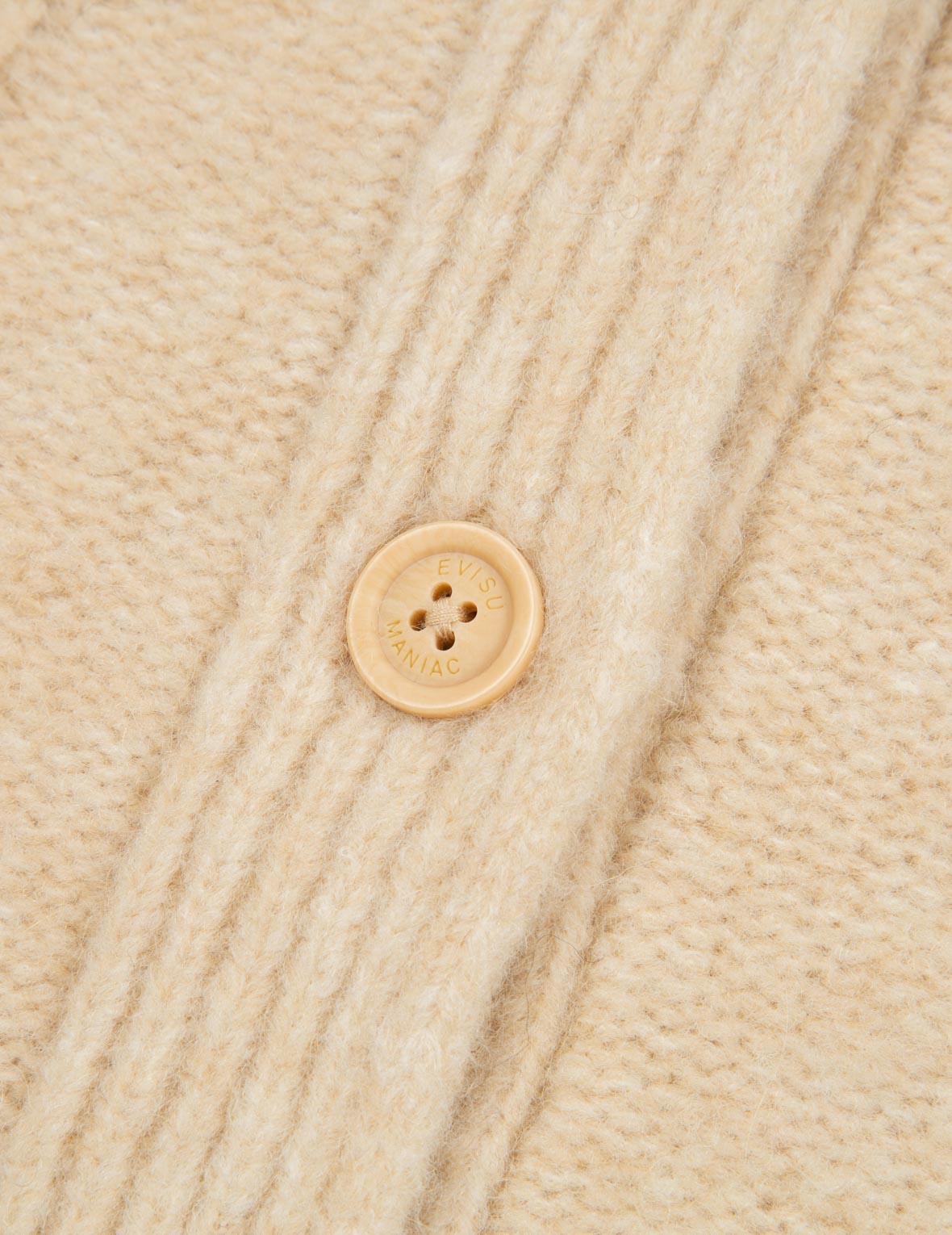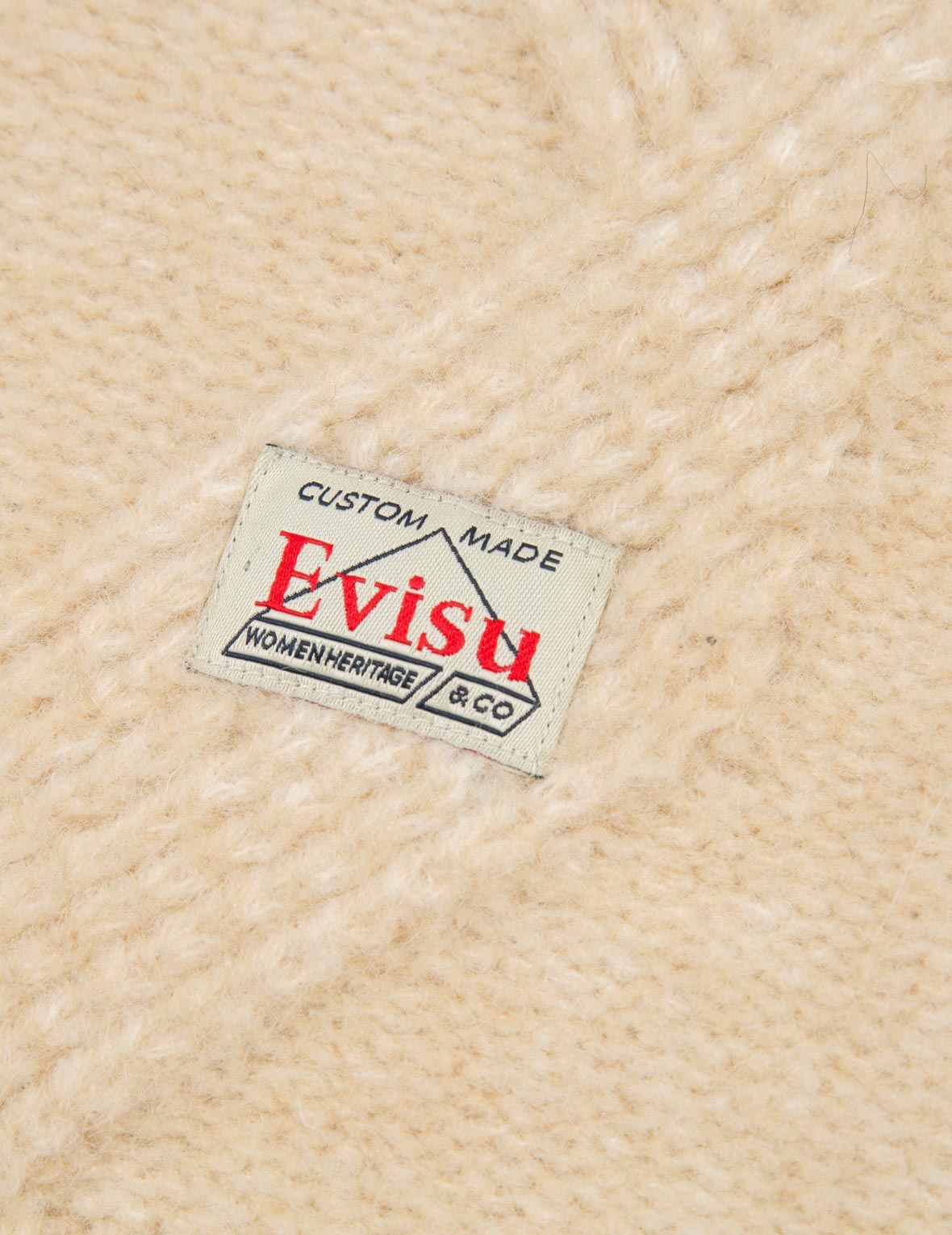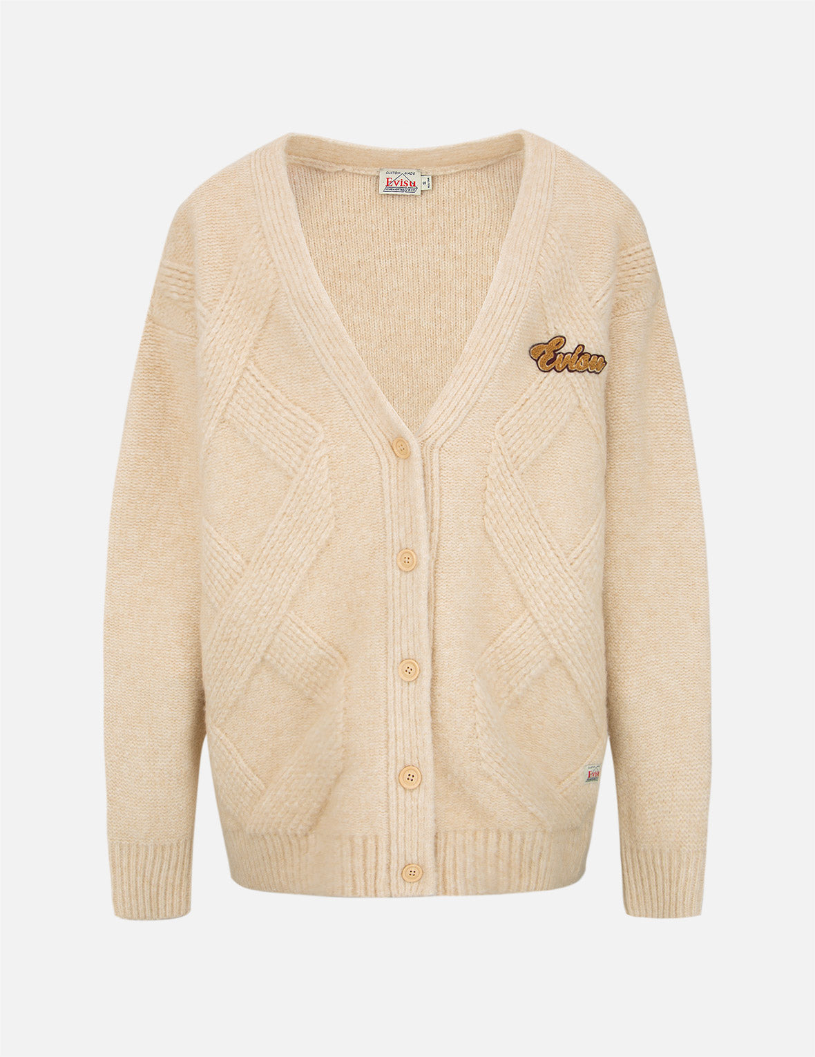 EVISU's collections are enriched by its love of sophisticated craftsmanship. Hand knitted from Llama and wool-blend, this cable cardigan comes with touches of logo towel embroidered patch inspired by style in the 1970s.
