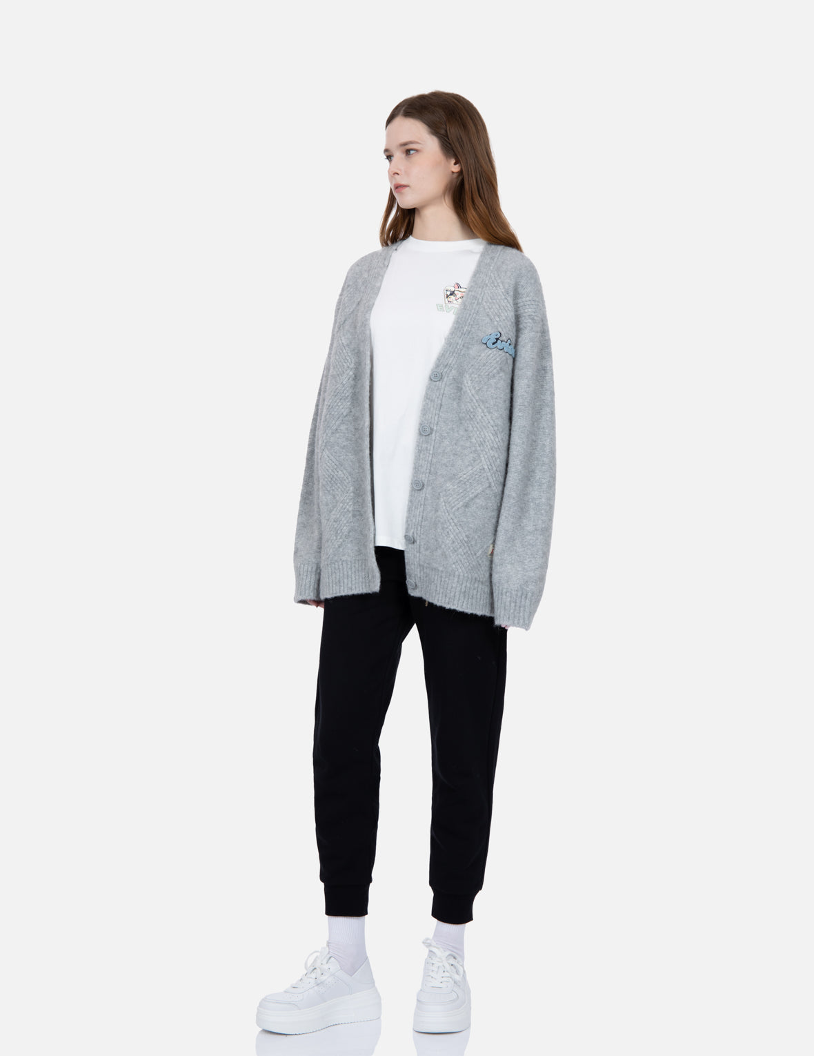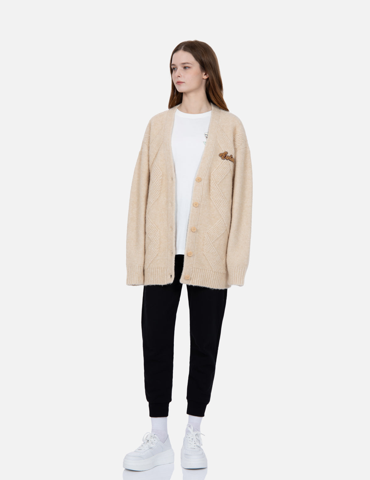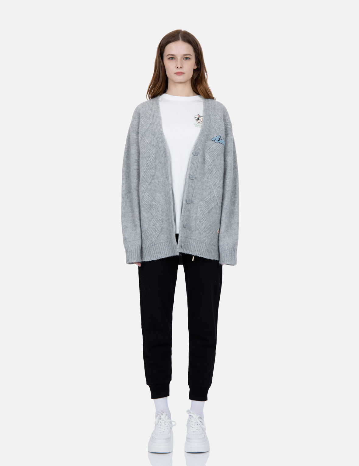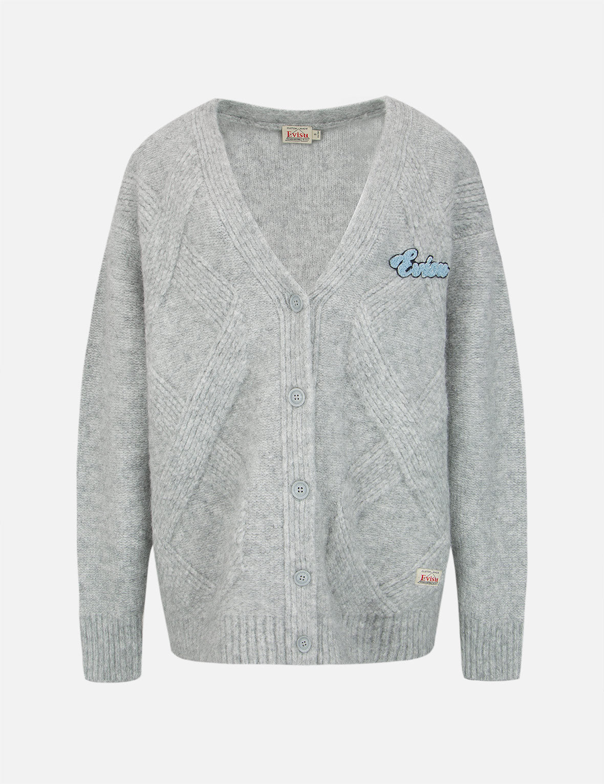 EVISU's collections are enriched by its love of sophisticated craftsmanship. Hand knitted from Llama and wool-blend, this cable cardigan comes with touches of logo towel embroidered patch inspired by style in the 1970s.