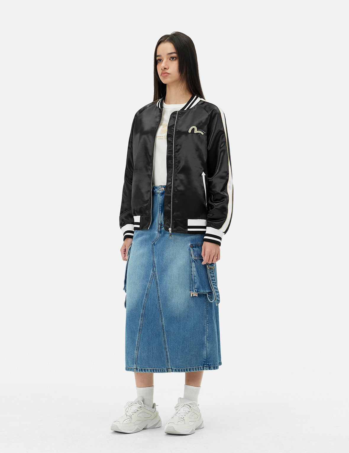 Deconstructed Inserted Seagull Embroidery Fashion Fit Denim Cargo Skirt