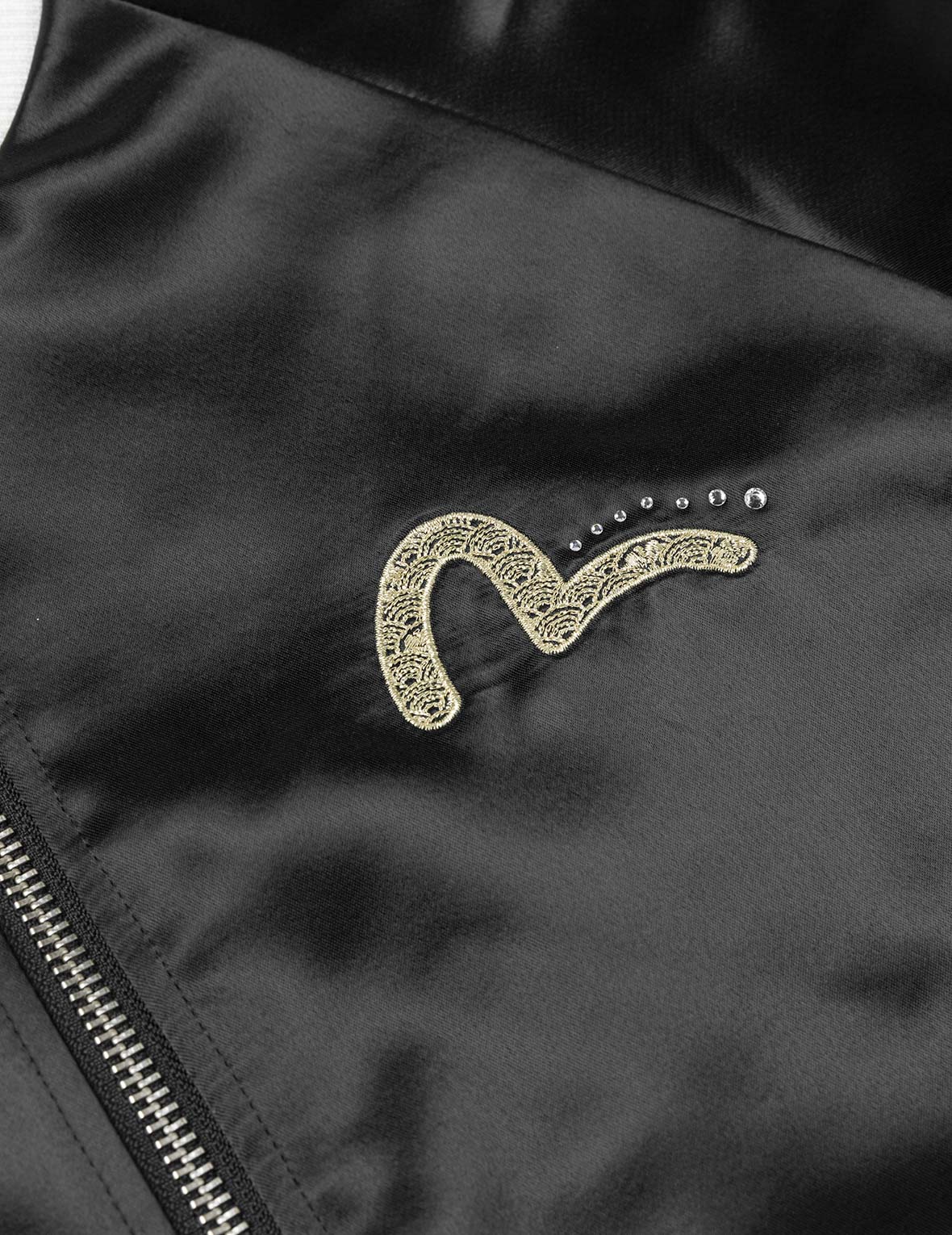 This Souvenir jacket features a uniquely crafted design, with a beautifully embroidered Seagull on the front, embellished with sparkling rhinestones for a touch of luxury. The back showcases the new season's theme elements, including the resilient hummingbird and the beautiful magnolia flower embroidery. The designer skillfully uses gold and silver embroidery threads and metallic materials, giving this jacket a distinctive visual depth and texture.