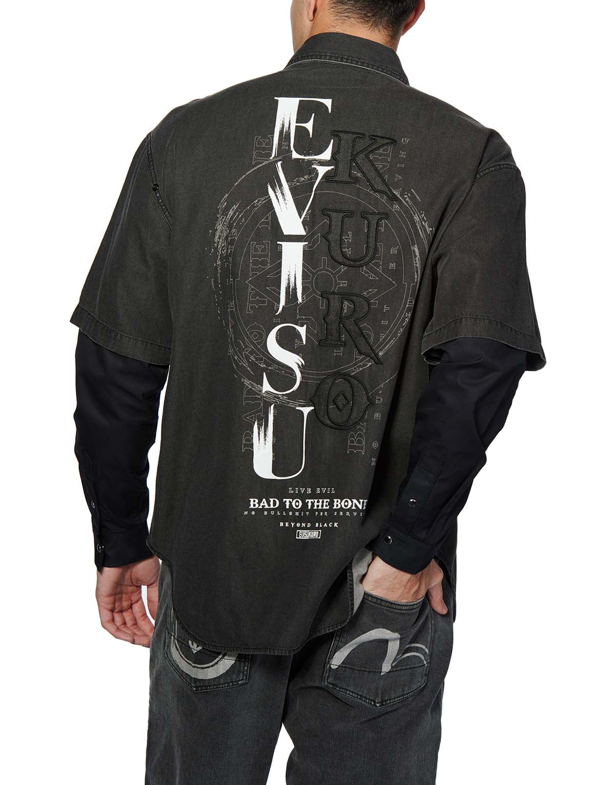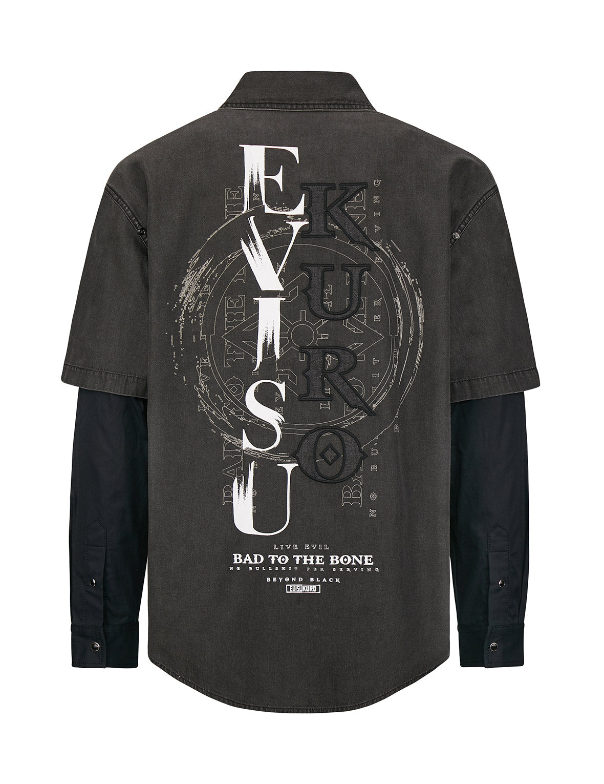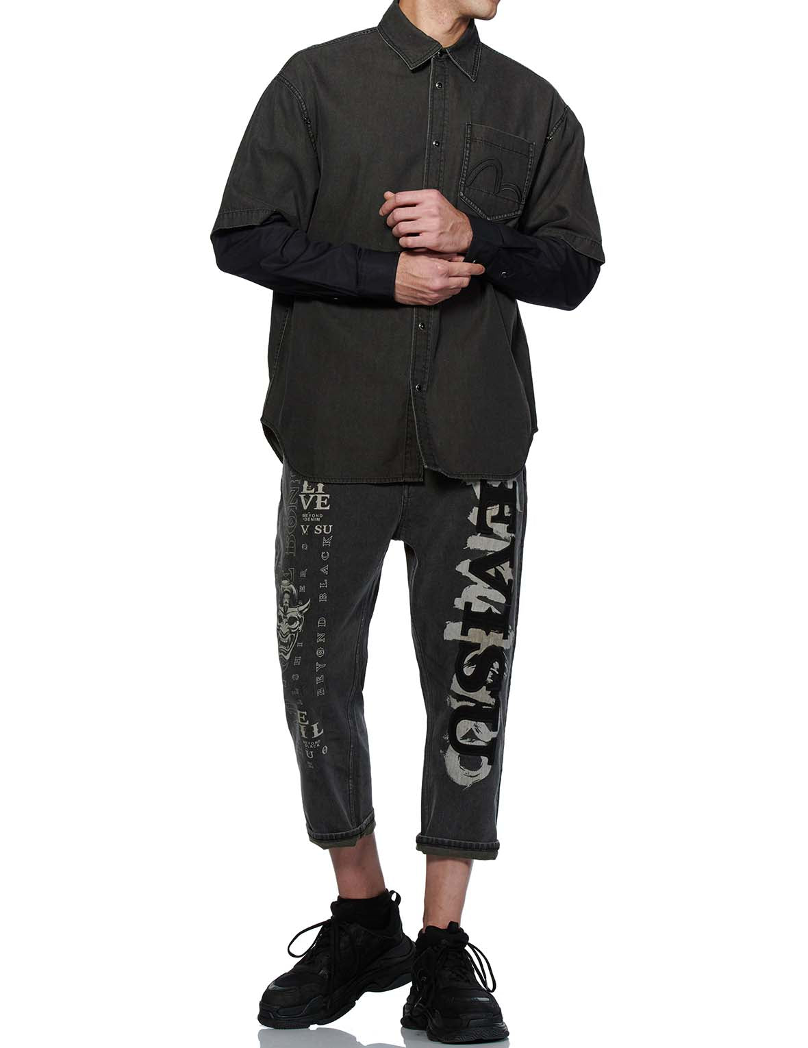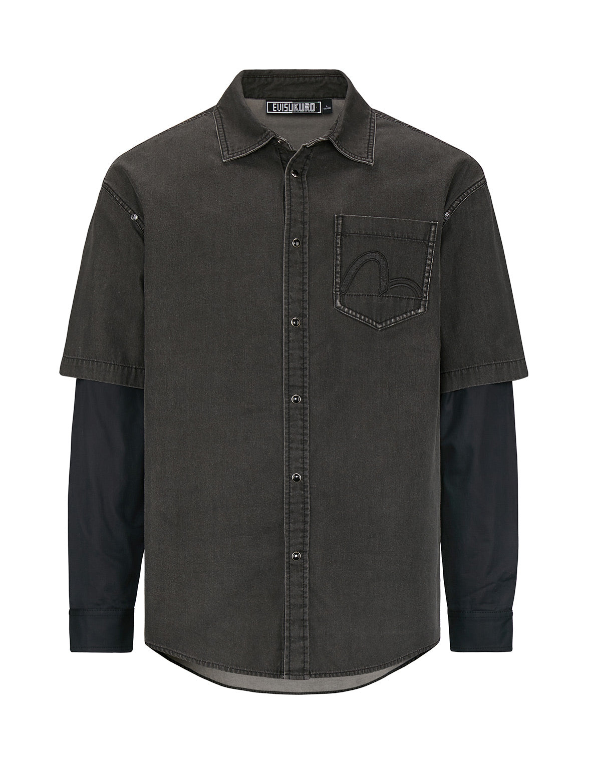 Constructed with contrast sleeve underlays for a layered effect, this denim shirt is further accentuated with a plethora of signature prints and embroidery to catapult your street style.