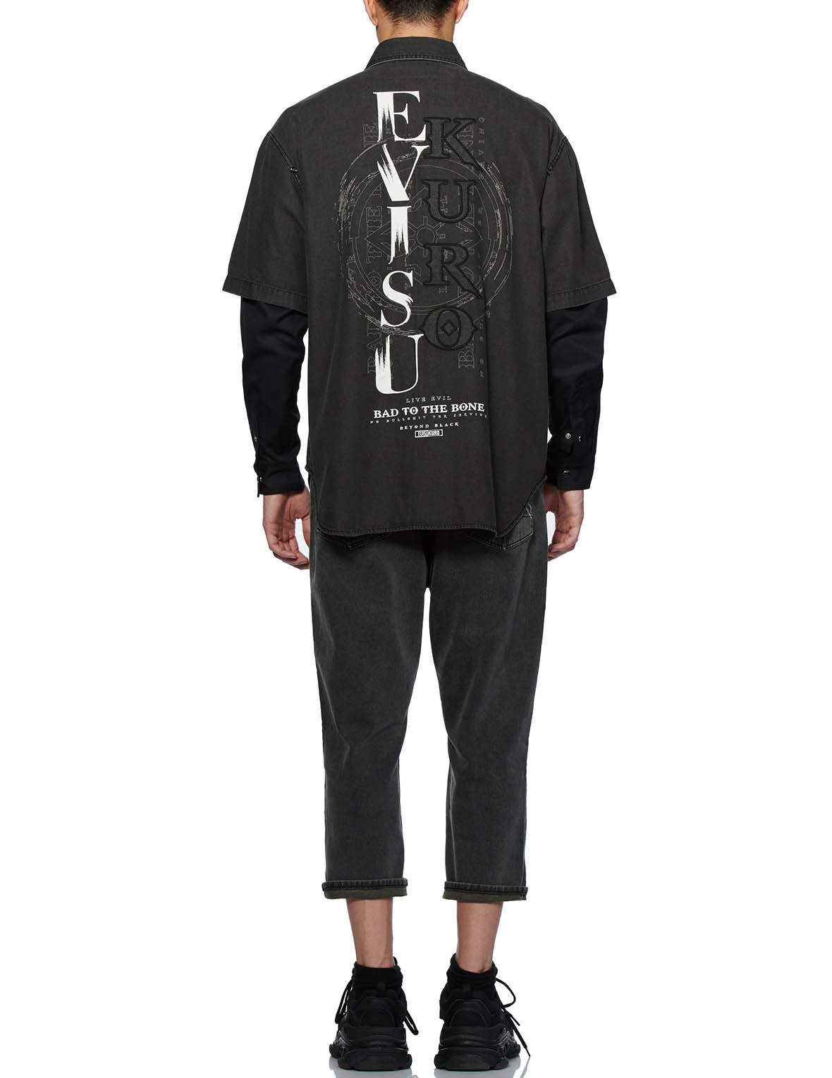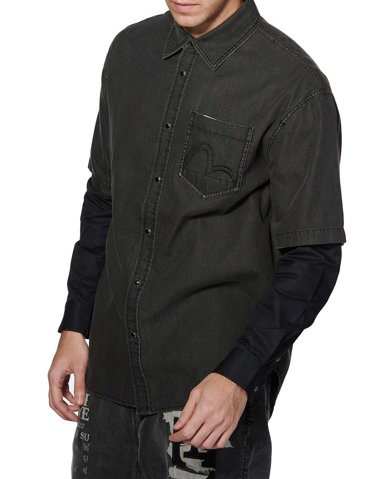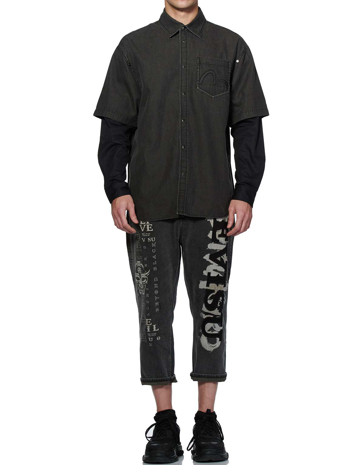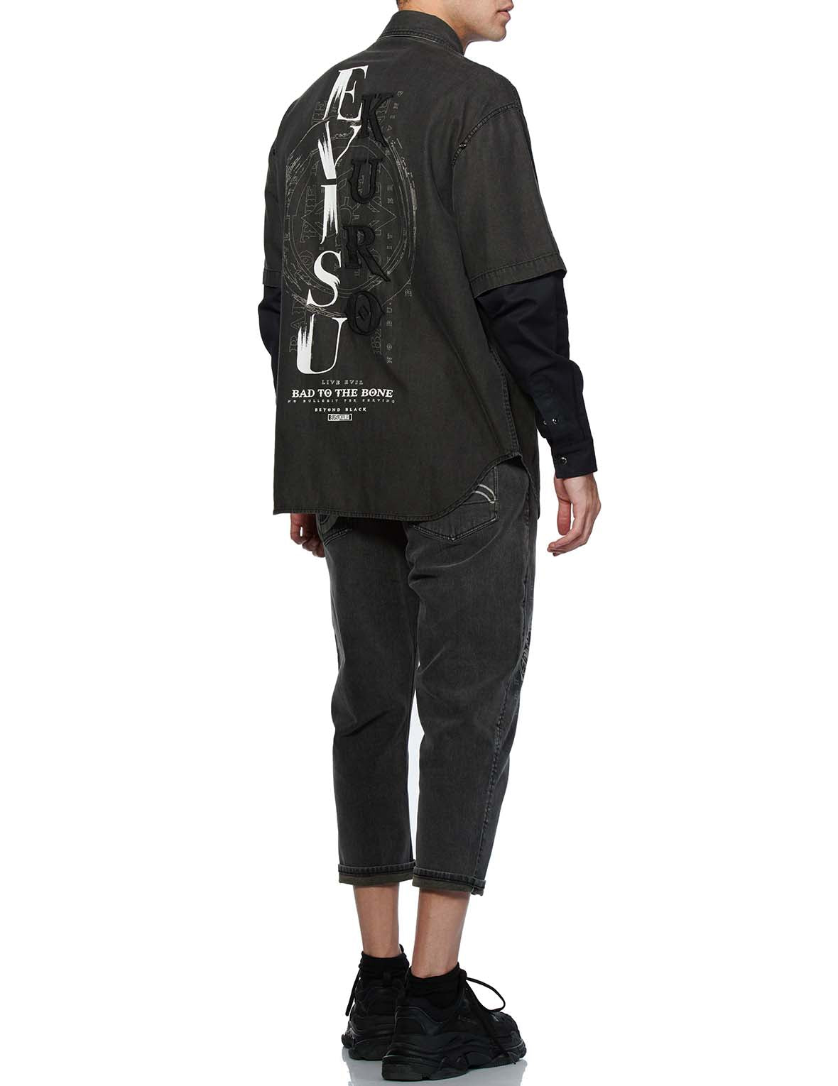 Constructed with contrast sleeve underlays for a layered effect, this denim shirt is further accentuated with a plethora of signature prints and embroidery to catapult your street style.