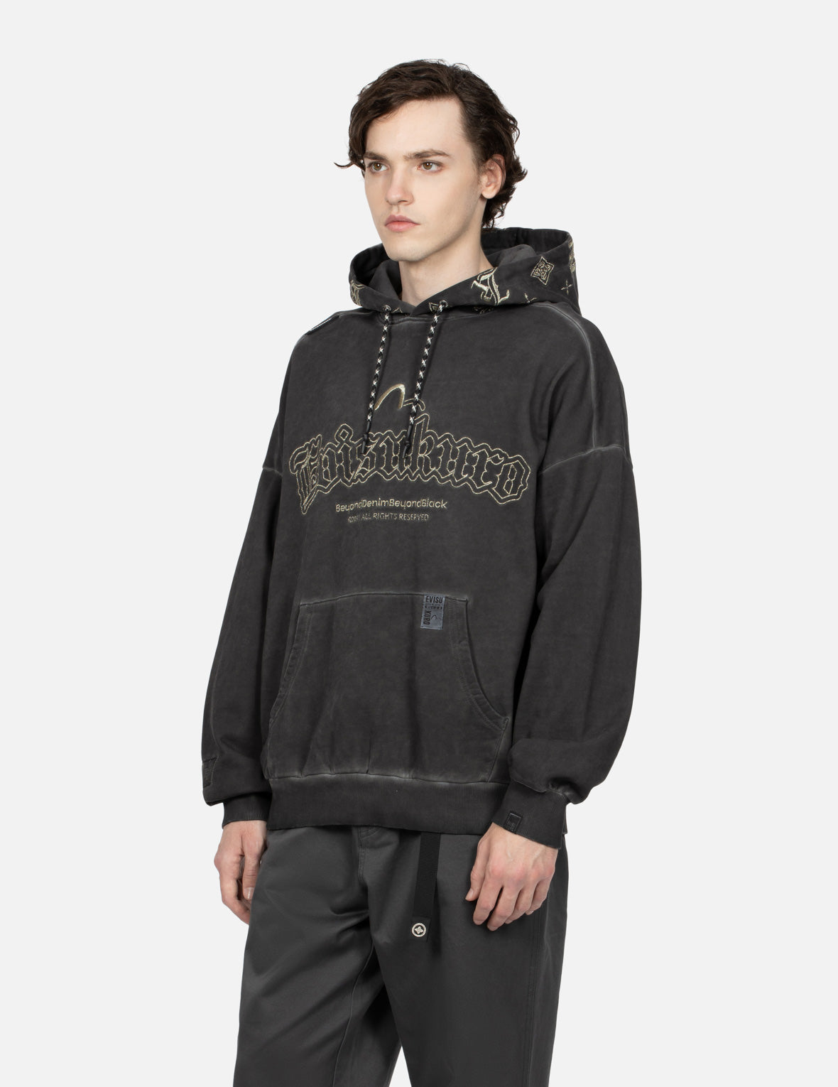 It wouldn't be an EVISUKURO design if there isn't a twist. This hoodie is designed with monogram embroidered hood to elevate your comfort and style at once. Made with pigment dyed fabric, this piece will upgrade your weekend outfits without forgoing versatility.