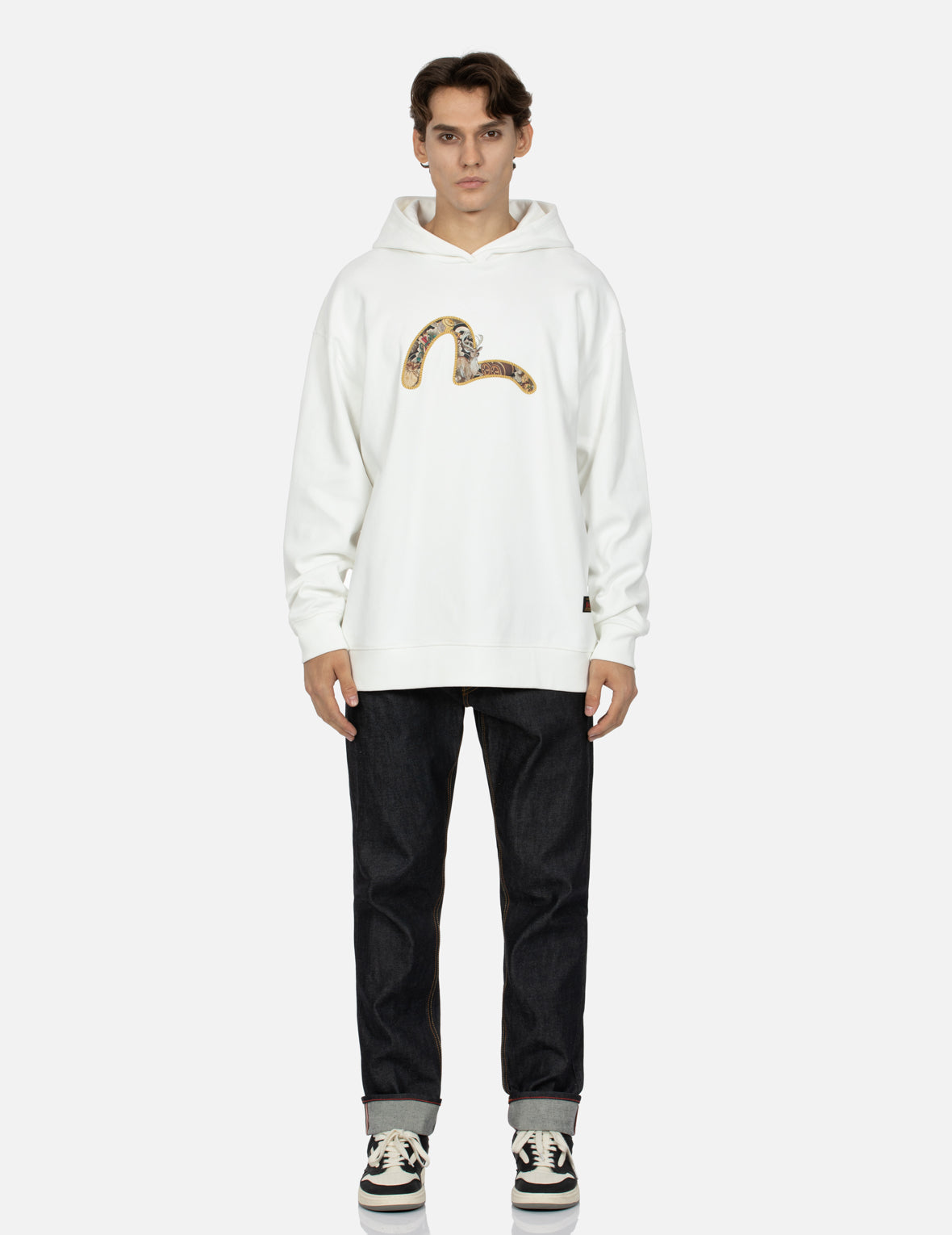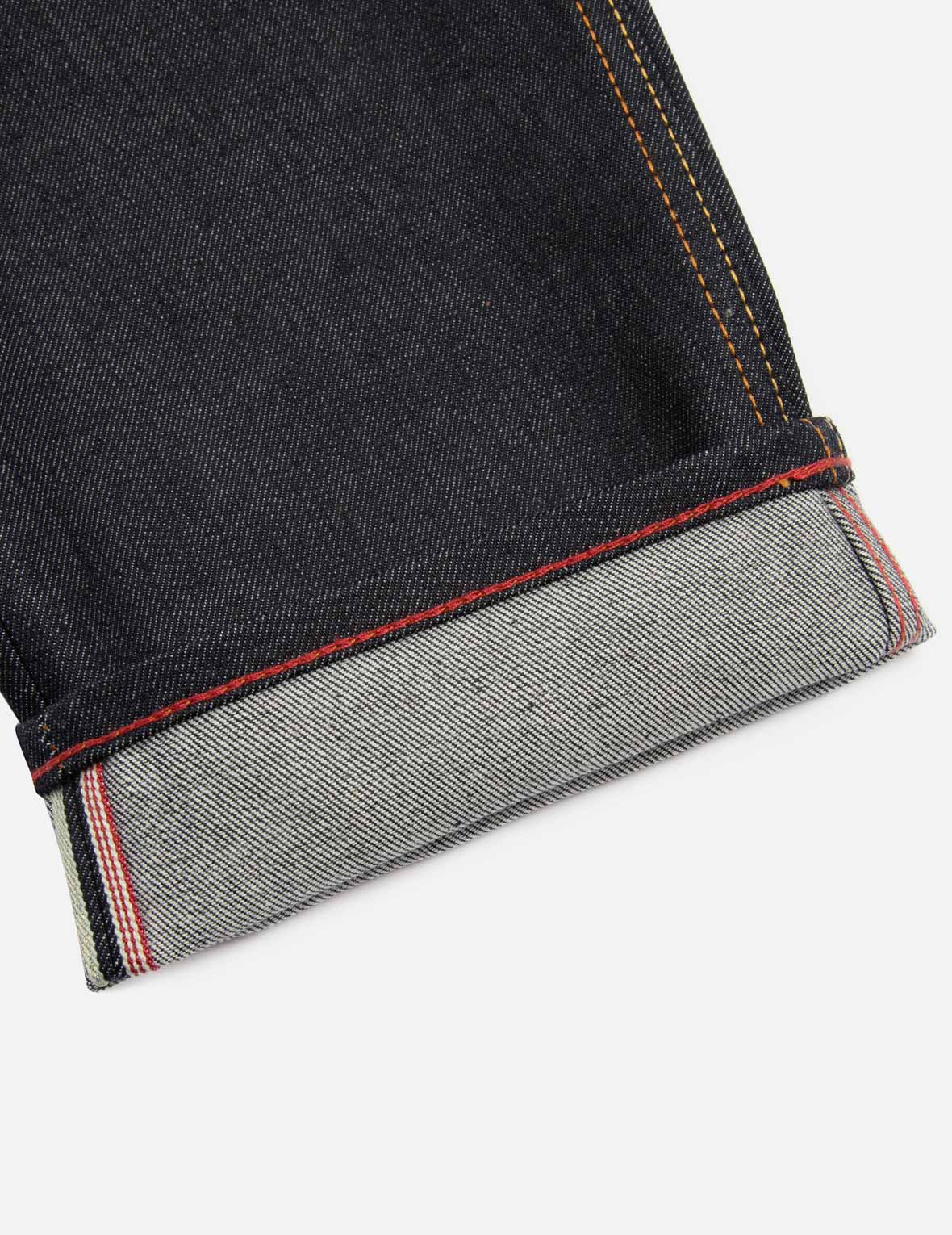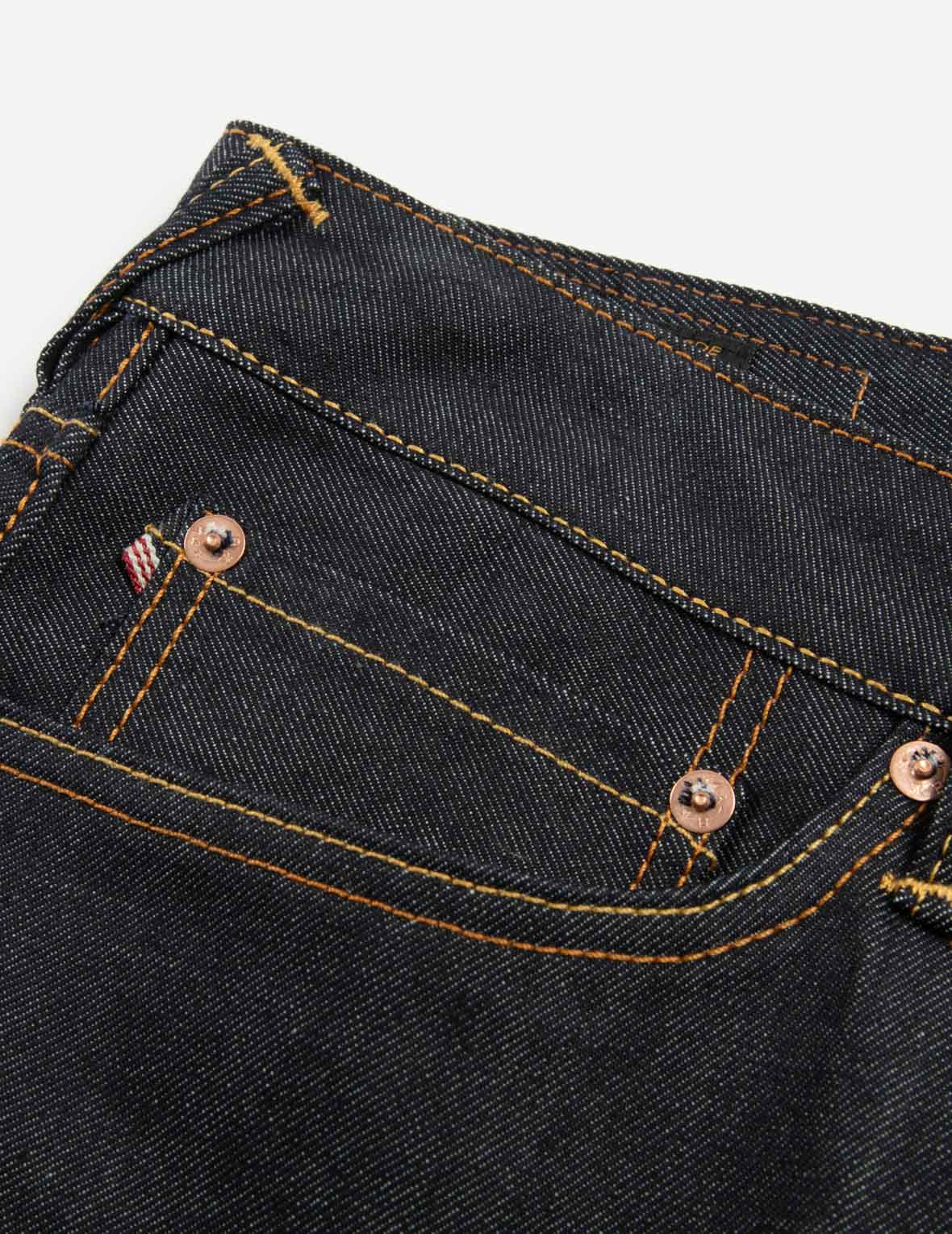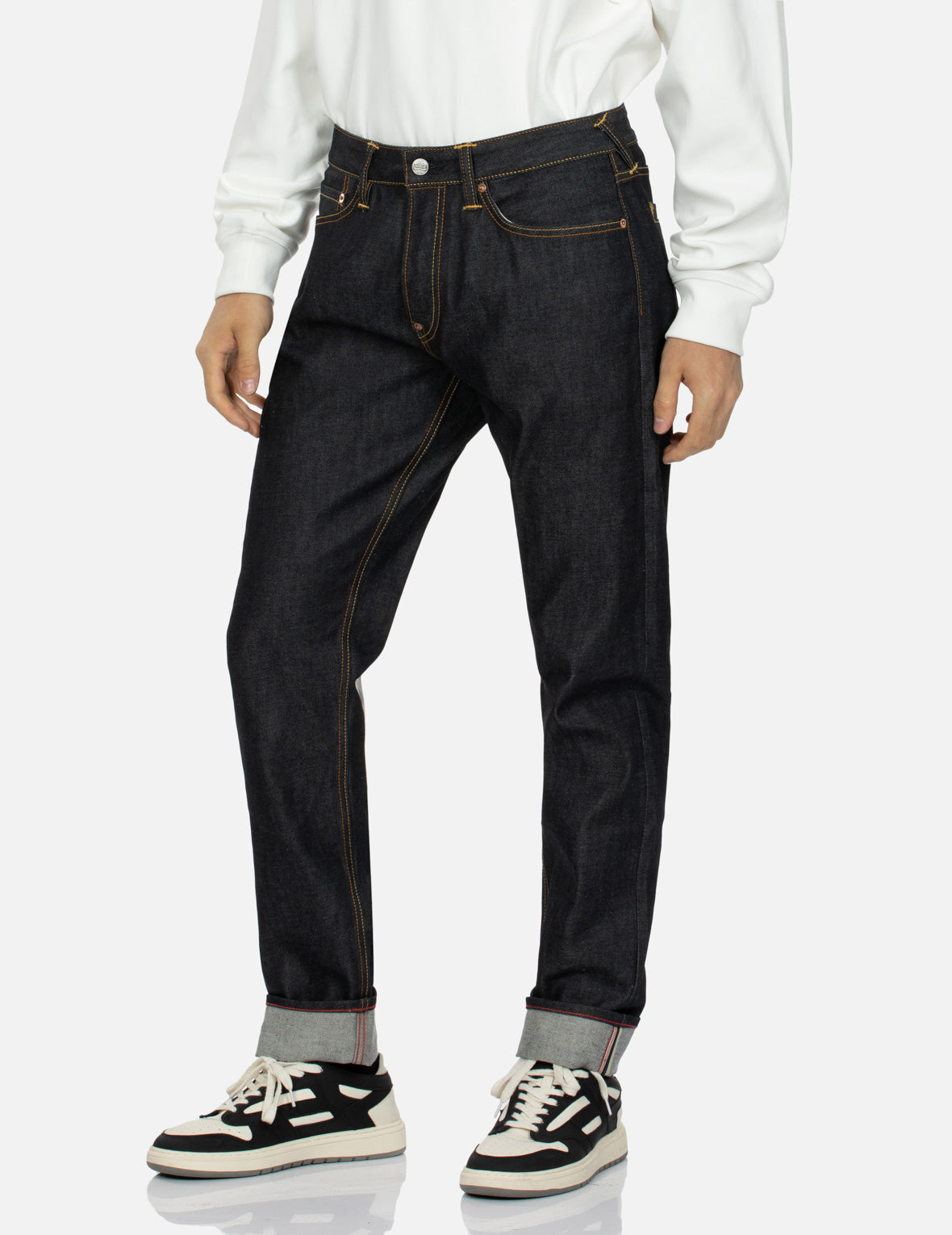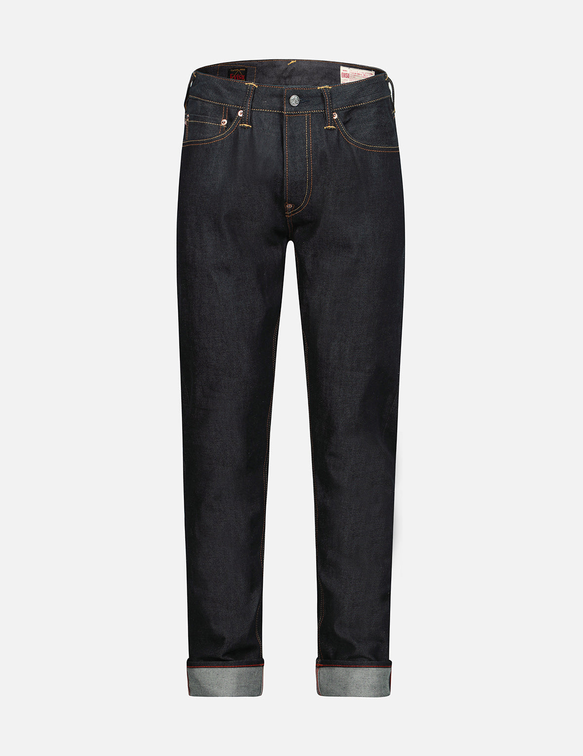 Drawing inspiration from the deity deer and treasures in Japanese folklore, EVISUs taper-fit selvedge denim jeans are decorated with a back Daicock in cloud and treasure pattern outlined with gold cord embroidery. The sophisticated deer embroidery is a symbol of longevity and good health.