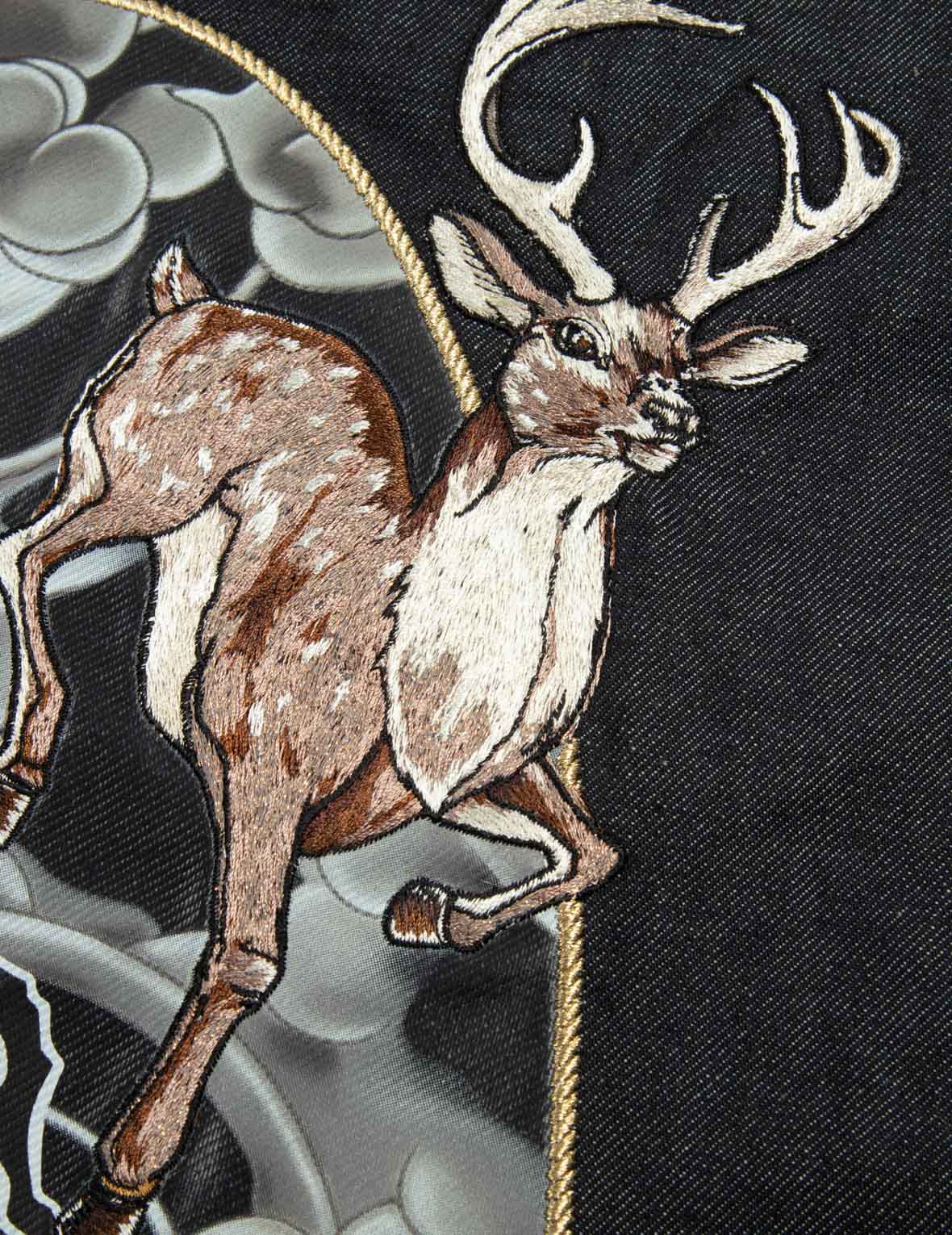- Deer embroidery, treasure and cloud pattern Daicock print with outline cord embroidery