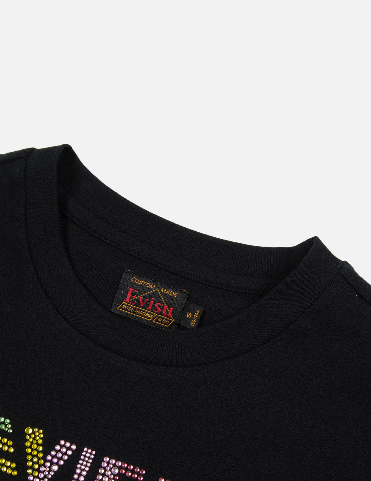 这款来自EVISU的T恤无疑会成为你衣橱中又一款点睛单品,衣身加入了彩色闪石烫钻EVISU商标,做工细致华丽,是一款百搭实穿的新季必备单品。