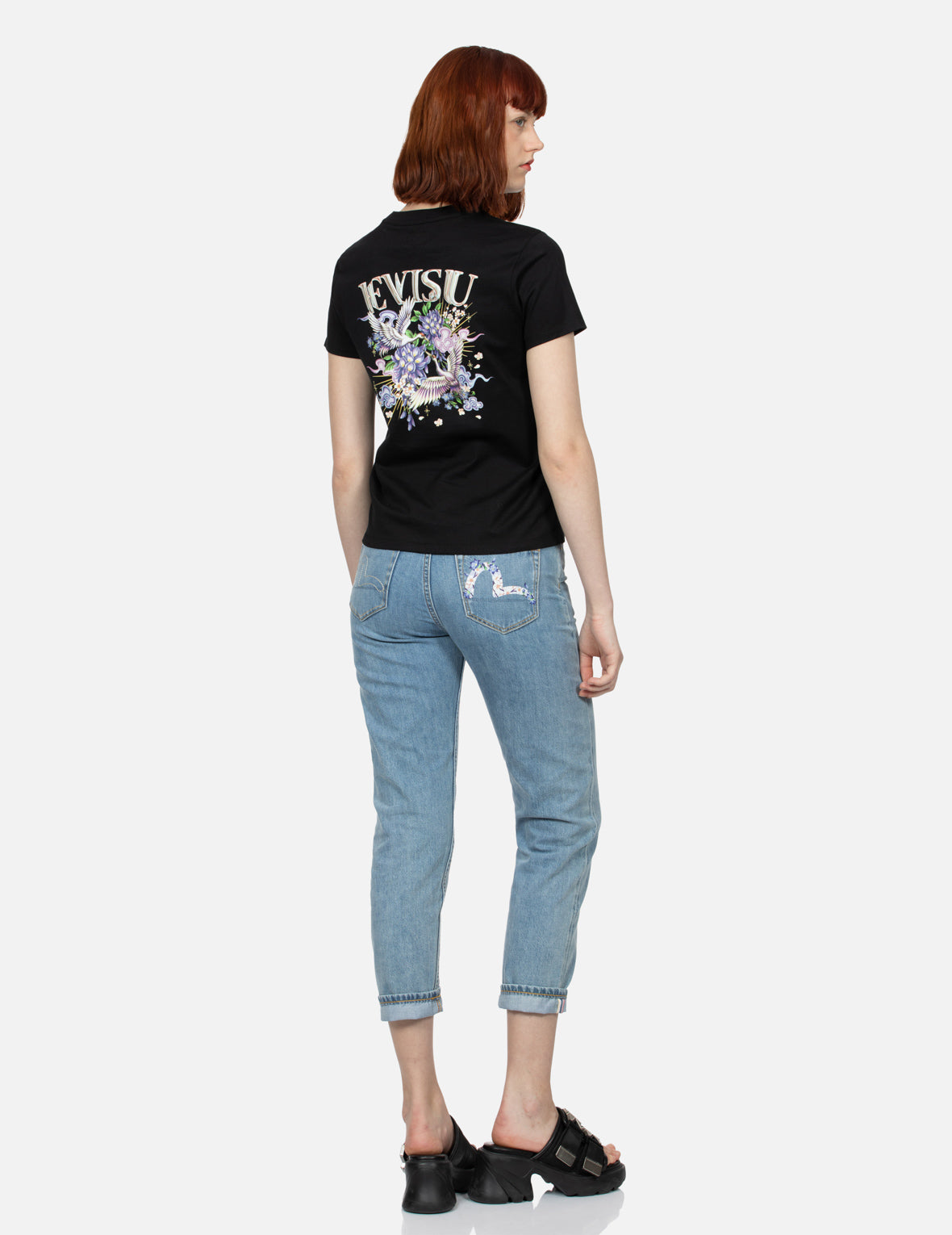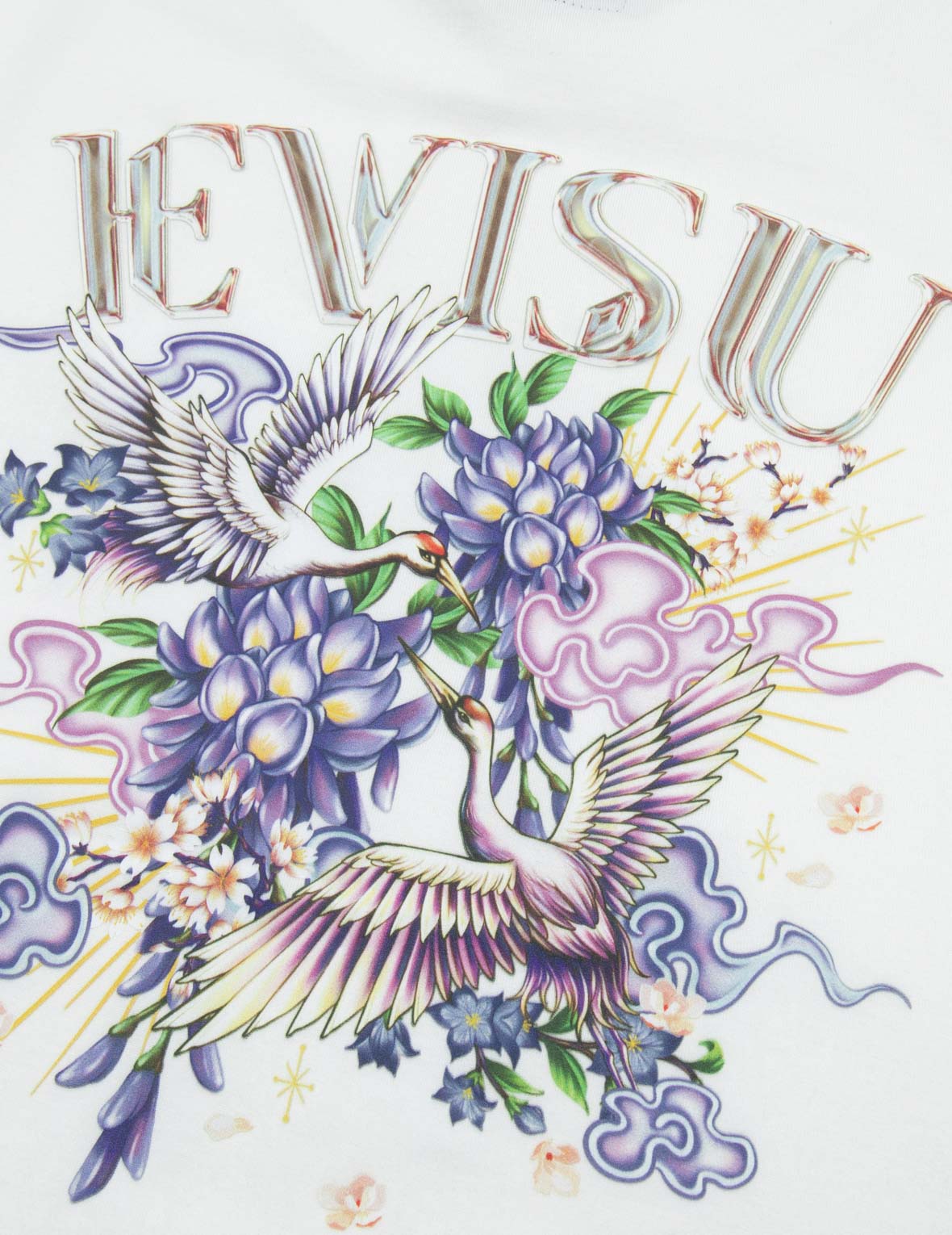 对惹眼印花爱好者来说,您一定会喜欢这件充满春日味道的T恤。前幅以海鸥印花点缀,后面加入了仙鹤和紫藤花的图案,增添几分细节魅力。